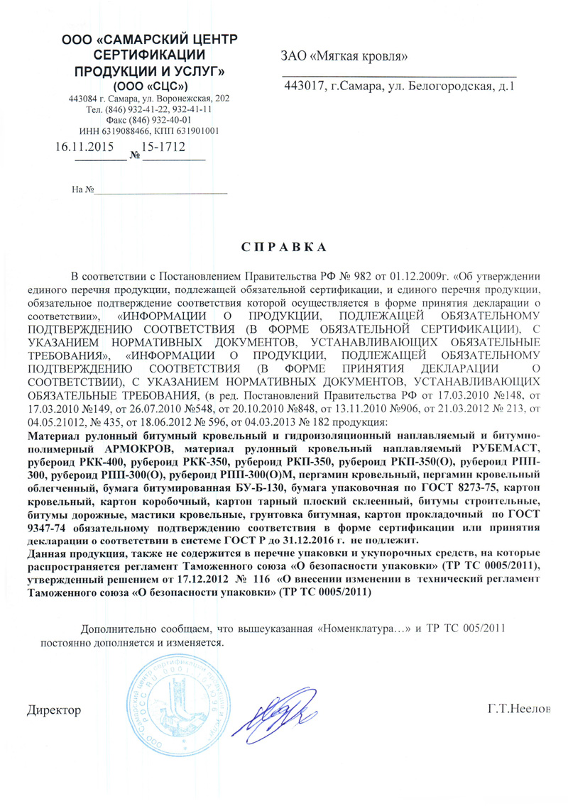 Декларация Соответствия Самарская Мастика Битумно-Полимерная