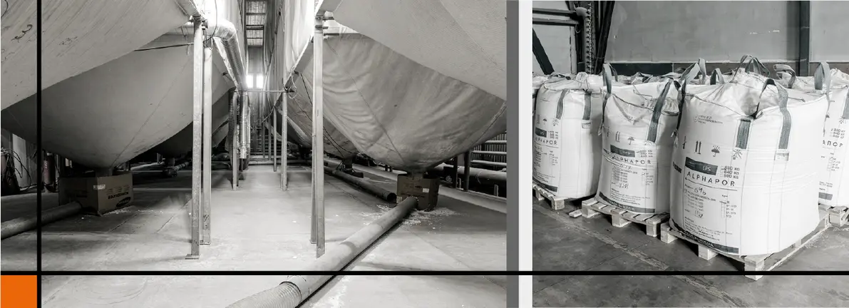 В качестве сырья используется вспенивающийся полистирол марки ALPHAPOR от компании «Сибур». ALPHAPOR - это единственный на сегодняшний день российский полистирол, соответствующий европейским стандартам по гранулометрическому составу, плотности и физико-механическим характеристикам. ALPHAPOR - экологически-чистое сырье, которое на 98% состоит из воздуха. Безопасность подтверждается его использованием при производстве пищевой упаковки.